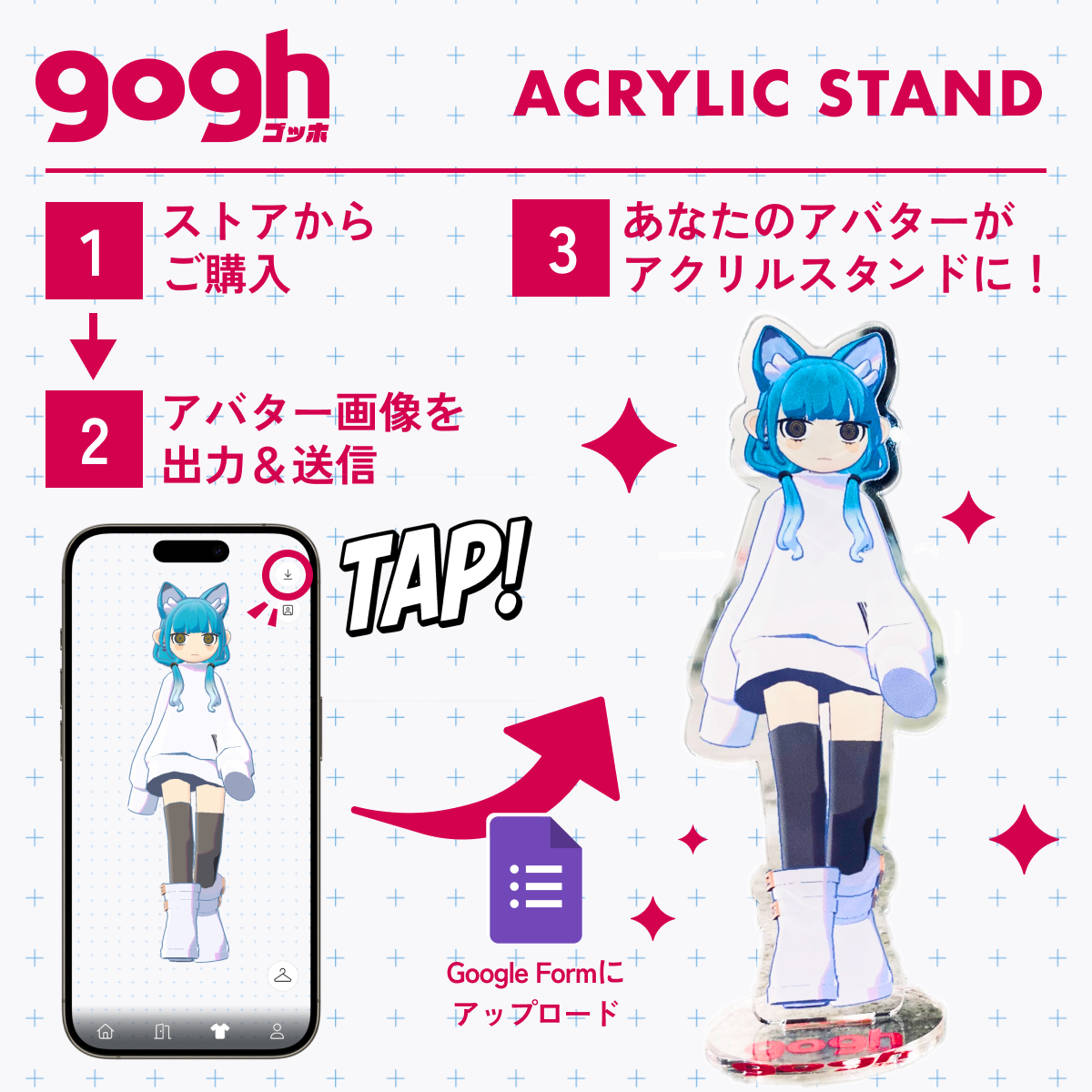 goghで作ったあなたのアバターのアクリルスタンドが購入できます。